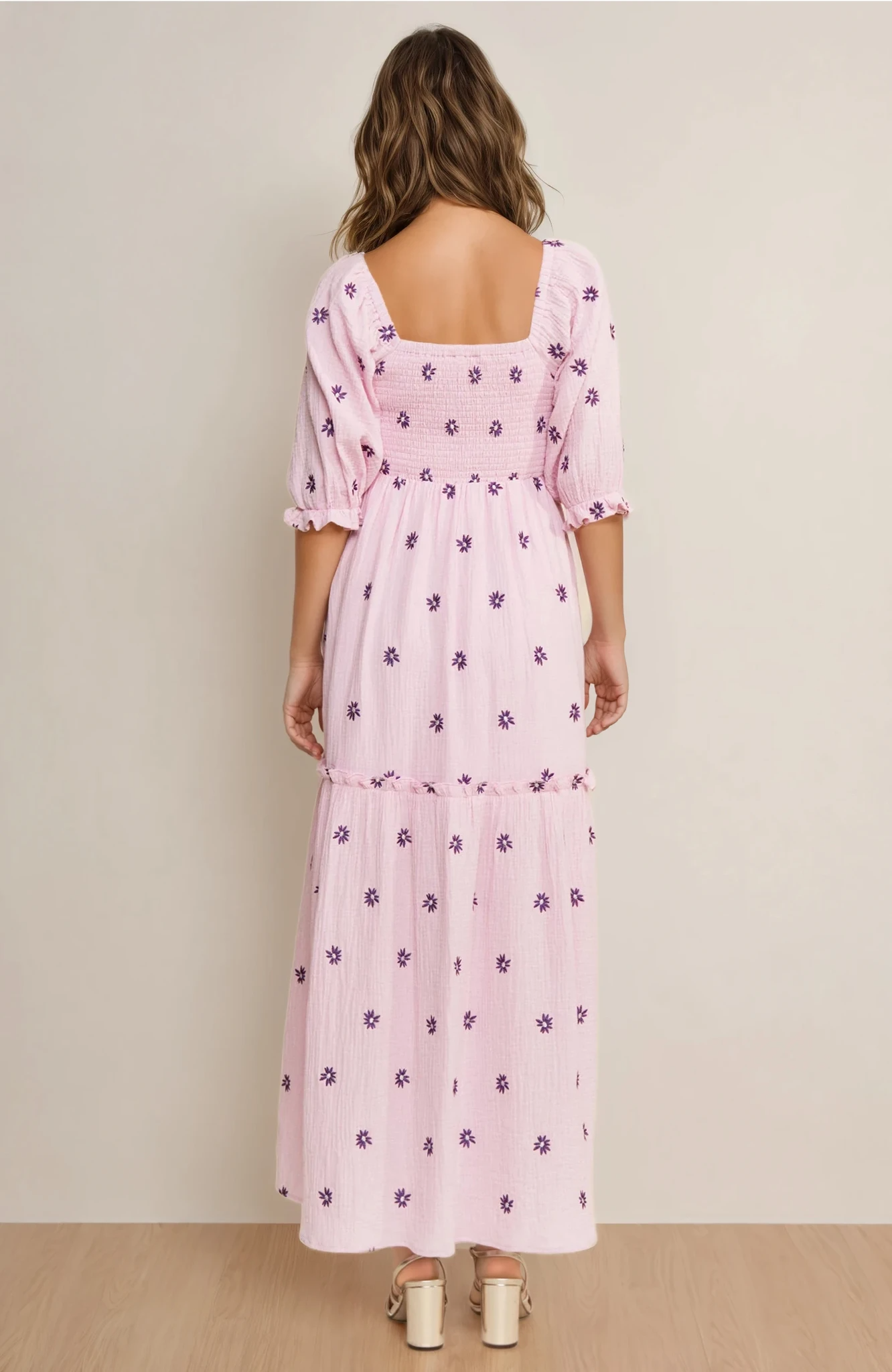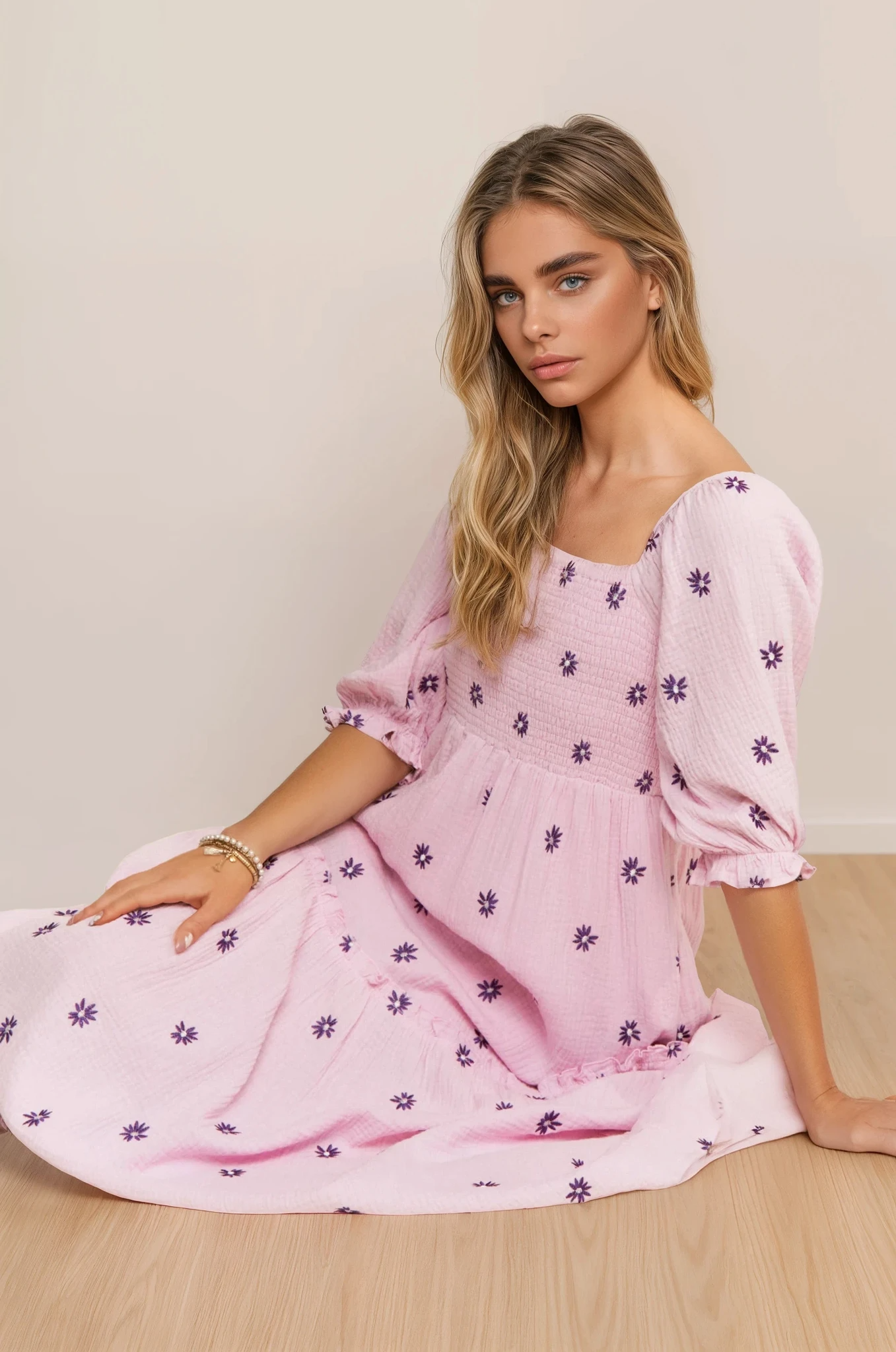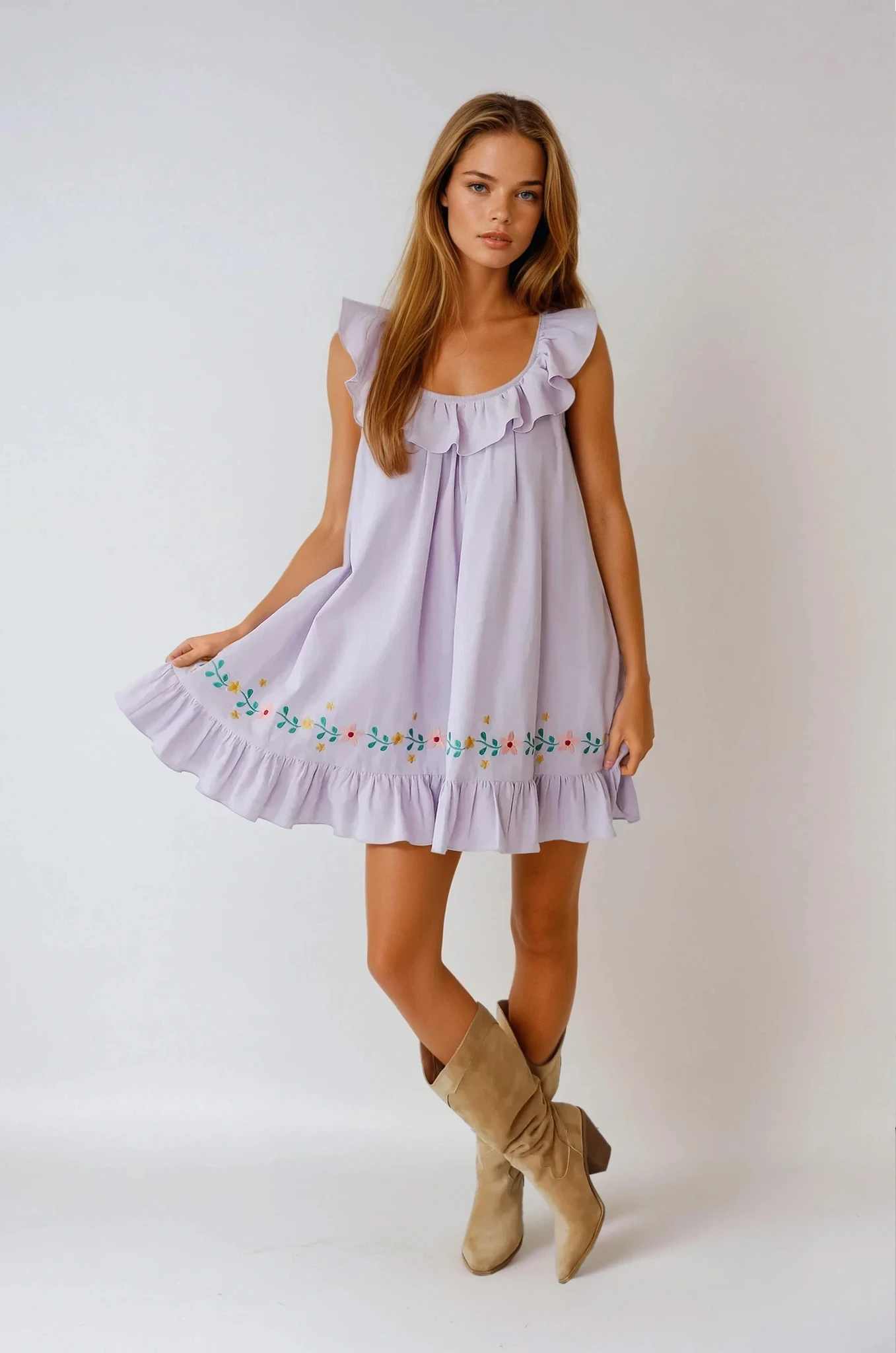 Lavender Floral Print Ruffle Lace Trim Mini Dress