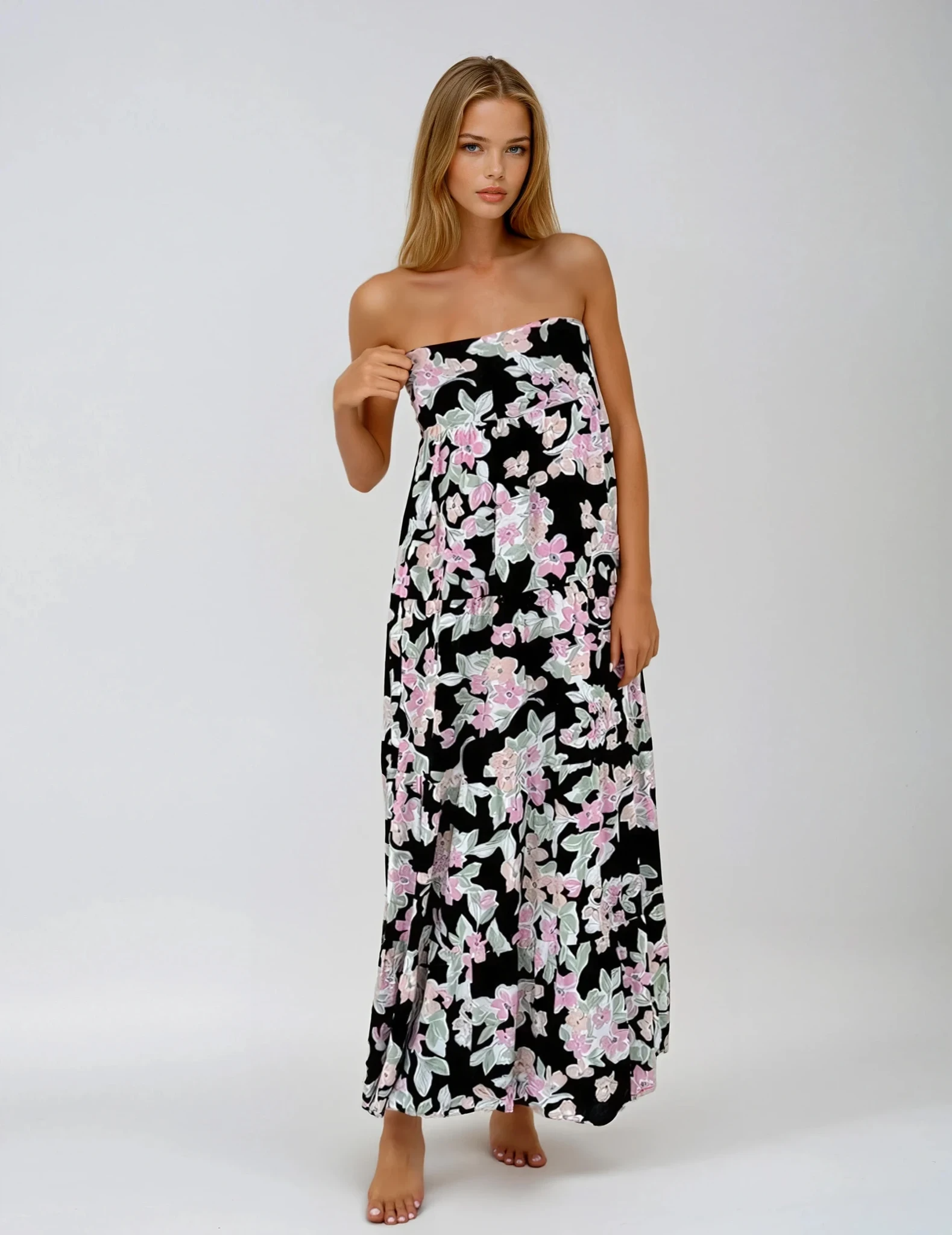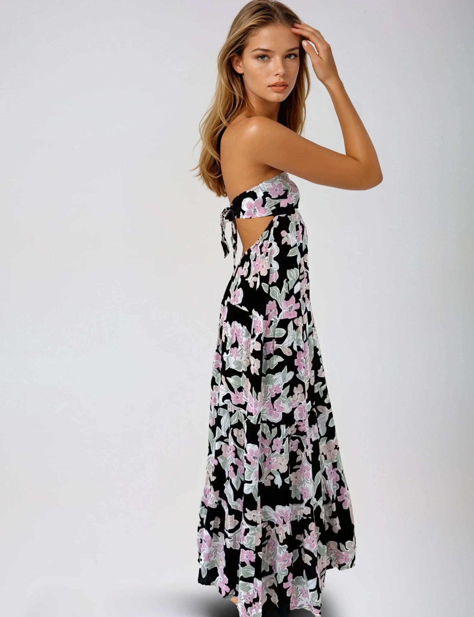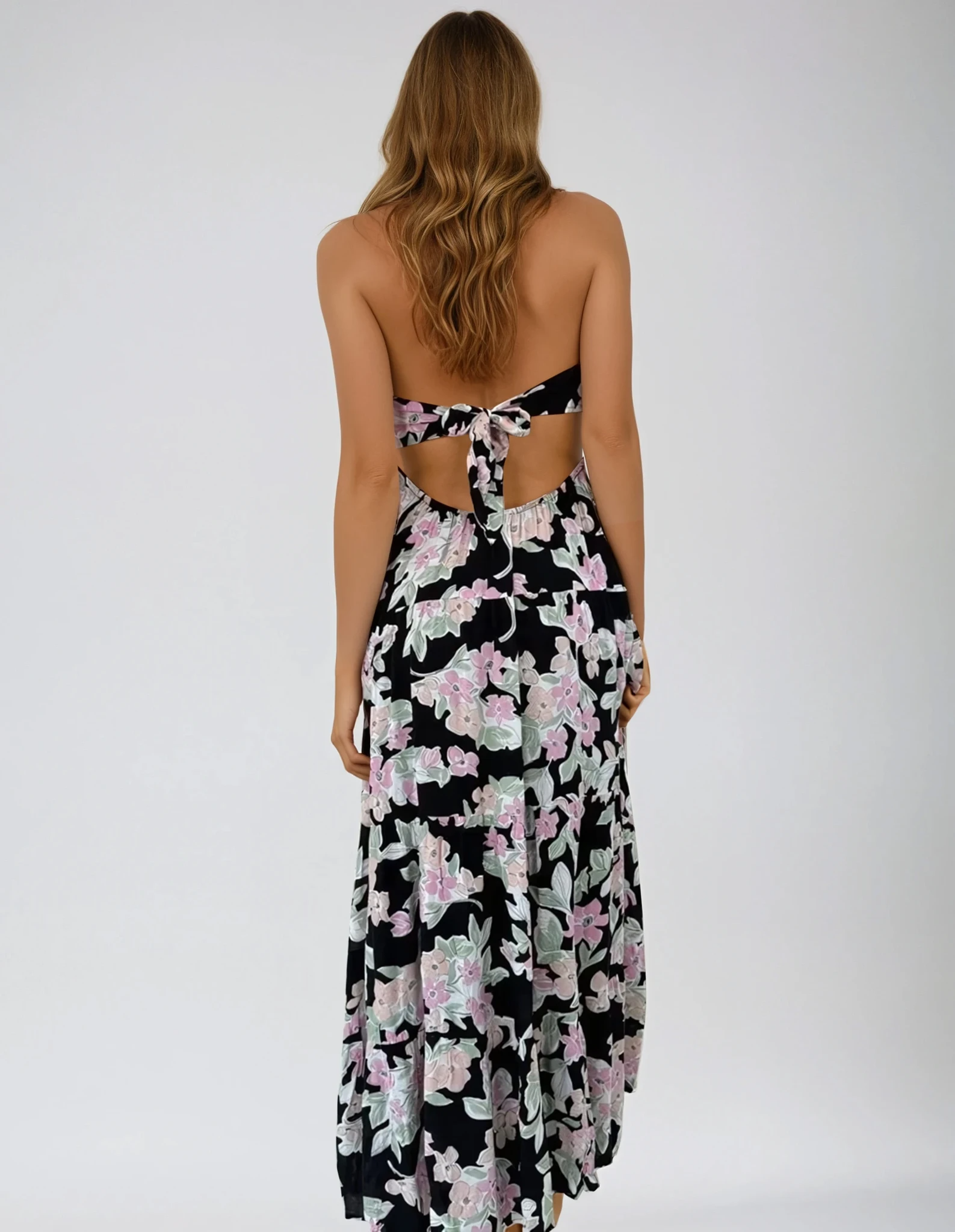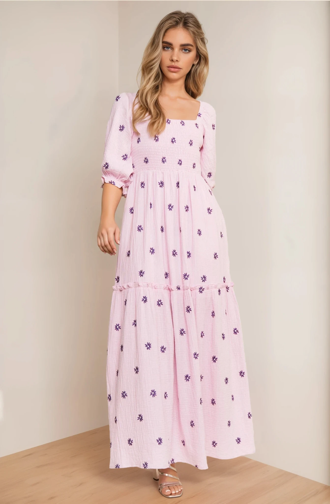 Lavender Floral Print Ruffle Lace Trim Mini Dress