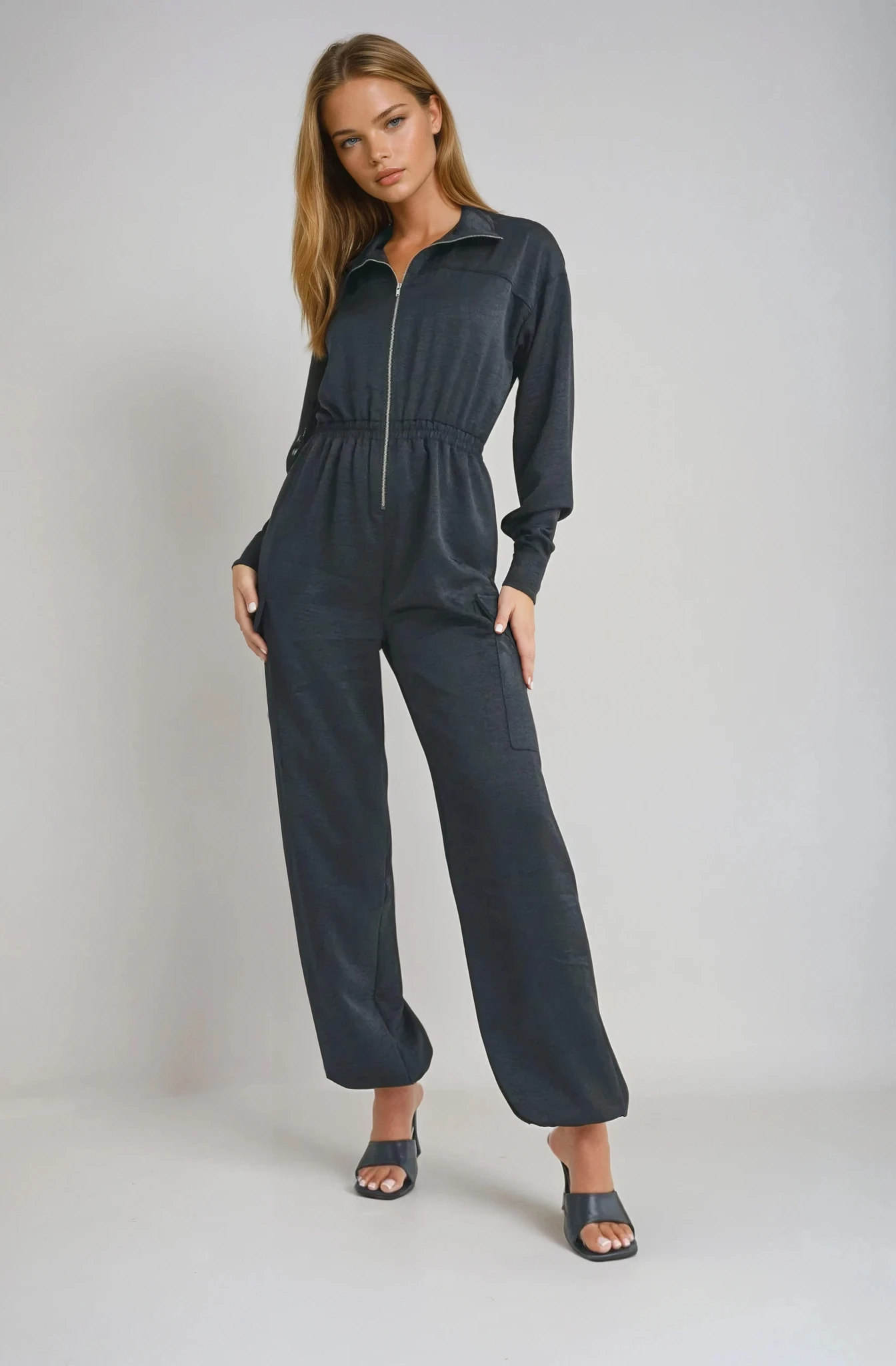 Floral Applique Deep Cowl Neck Jumpsuit in Black