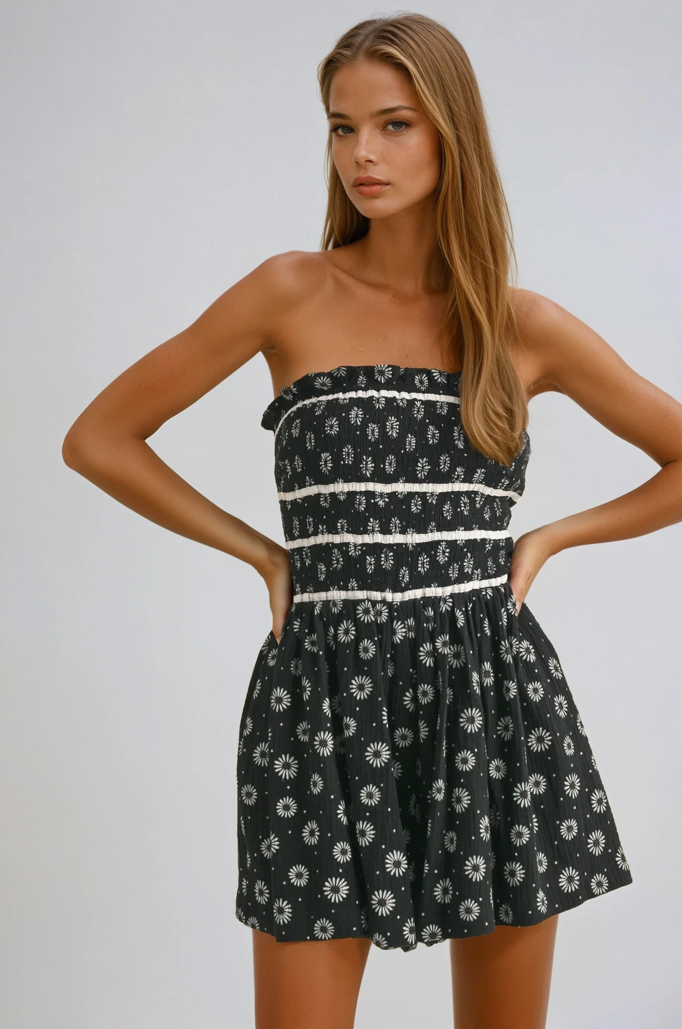 Black Floral Strapless Romper