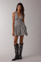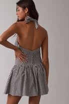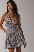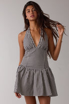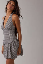 Black Gingham Halter Mini Dress