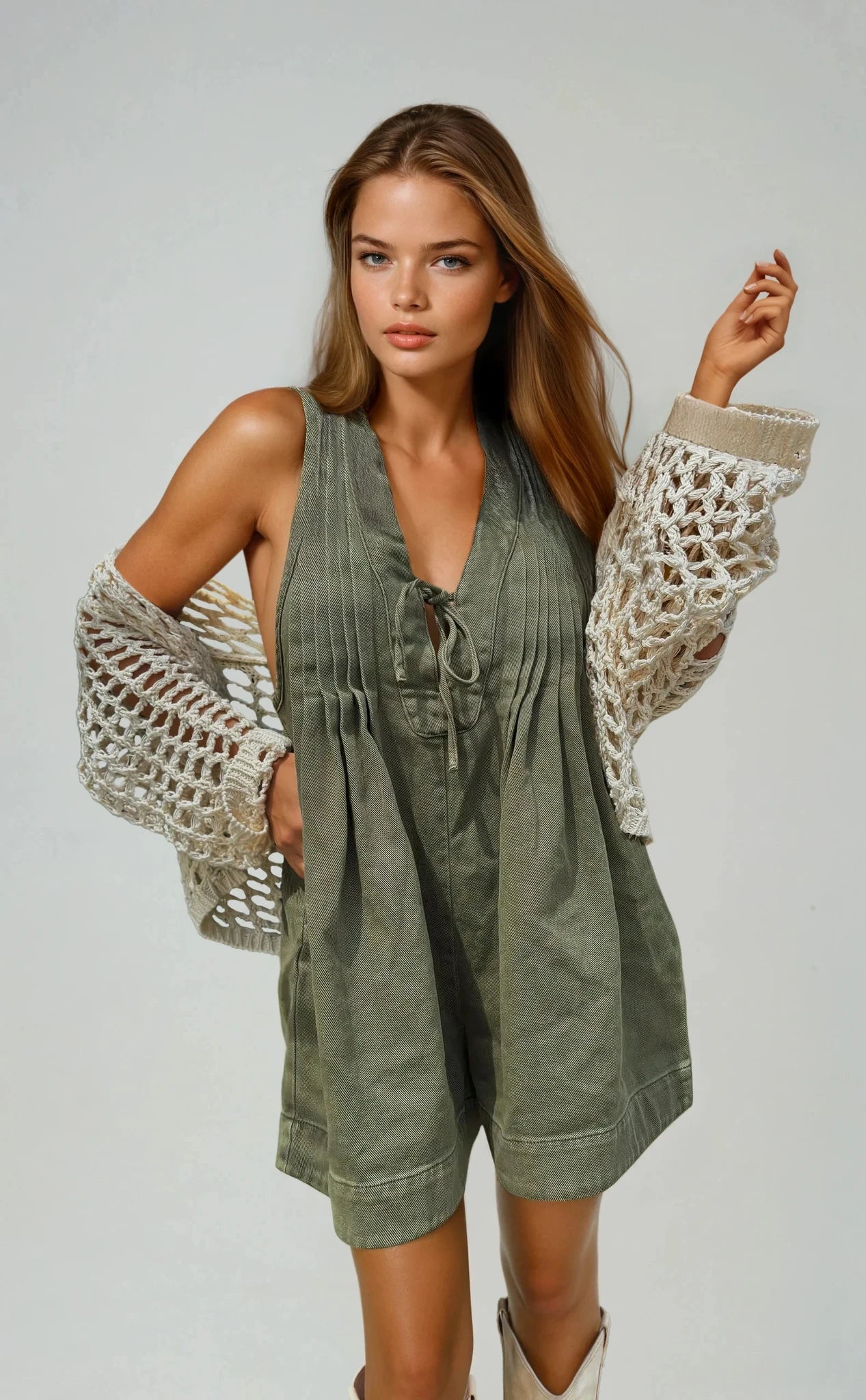Pleated Mineral Wash Romper