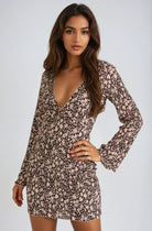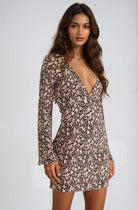 Flaunt your flawless style in this stunning black and cream bell sleeve mini dress! Tie the waist strings in different ways to give the dress multiple different styles.