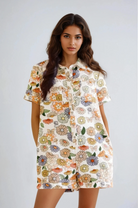 Butterfly, Mushroom and Floral Print Denim Romper