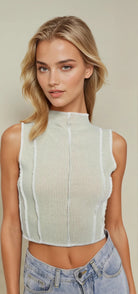 Our Sage Exposed Thread Top will give you a sleeveless cropped look perfect for any occasion. This top is great as a layering piece!