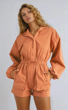 Slip into effortless style with this versatile hoodie romper, designed with a button-front closure and cozy long sleeves. The elasticized waist ensures a secure, flattering silhouette that moves with you throughout your day. Perfect for casual outings or relaxed weekends, this piece combines comfort and contemporary appeal in one streamlined package.