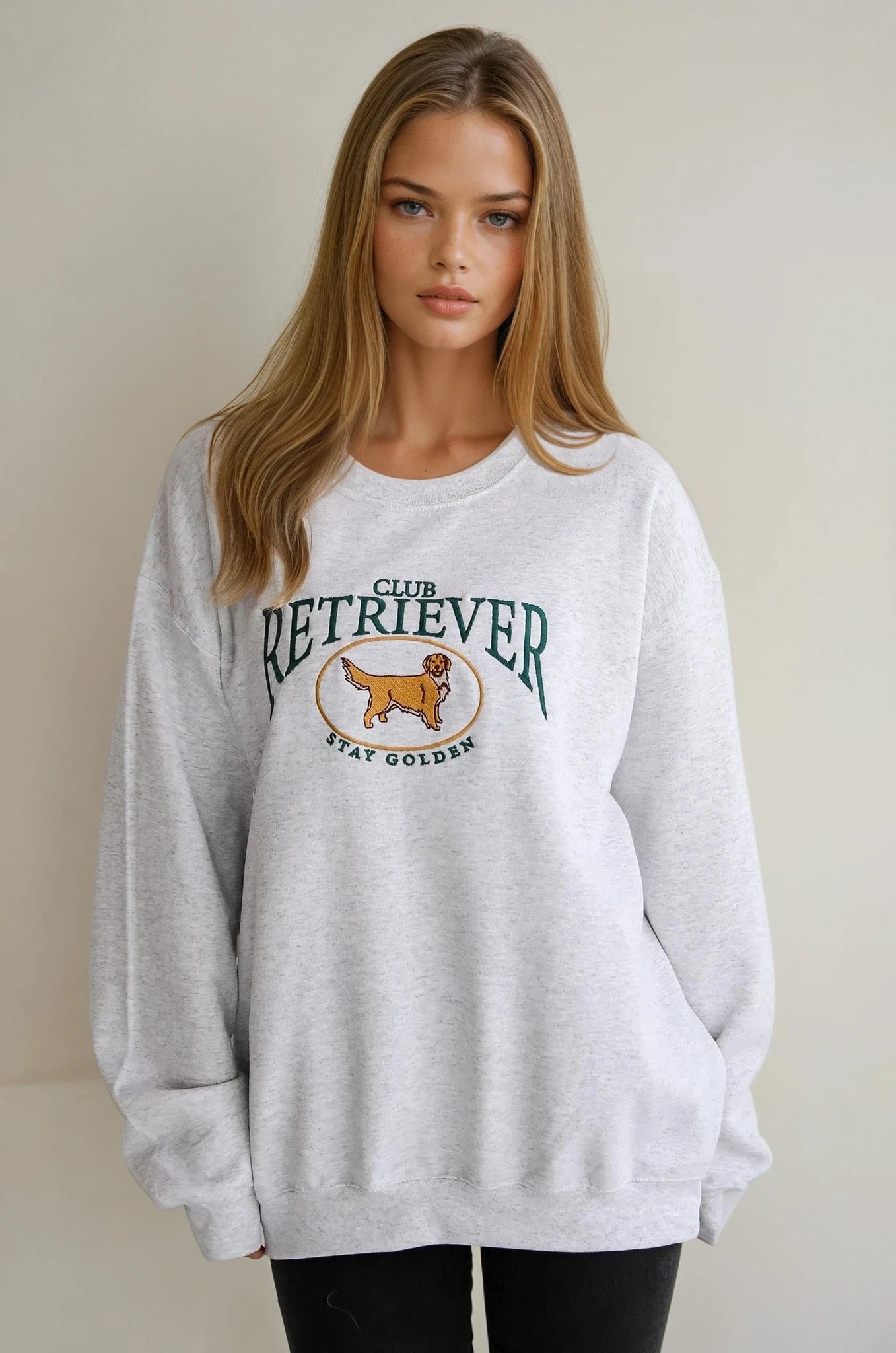 This sweatshirt is embroidered and has long sleeves, perfect for any retriever club event. It has an oversized fit for added comfort. Available in heather grey.